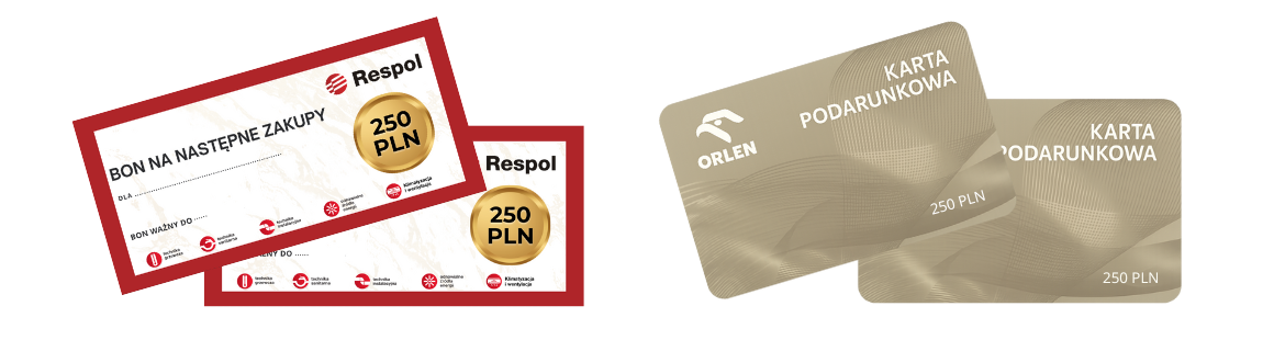 Zrób zakupy za min. 5 000 zł i odbierz bon paliwowy lub bon na kolejne zakupy w Respol o wartości 250 zł.